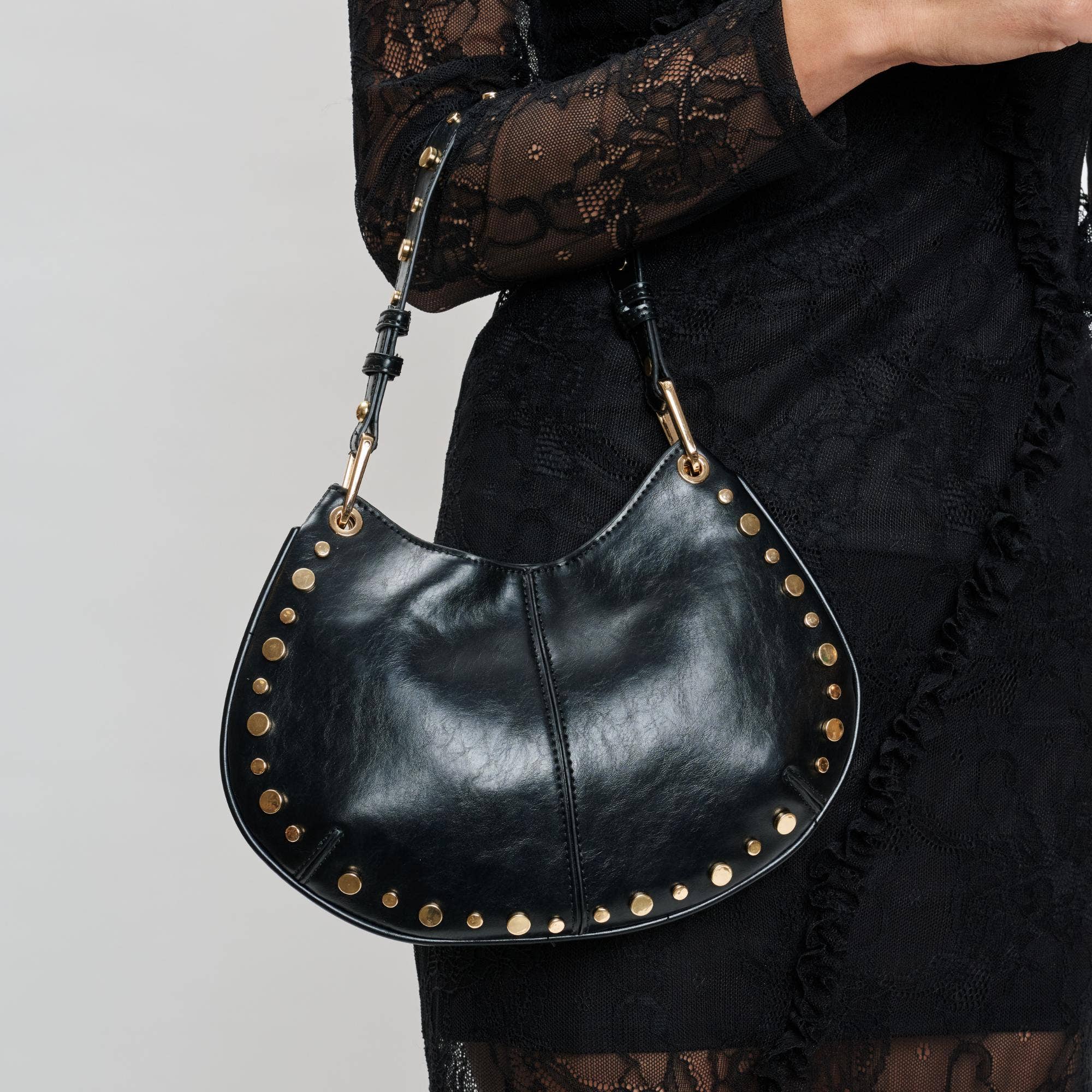 *Exterior Details: Stud Details, Adjustable/Detachable Crossbody Strap, Gold Hardware