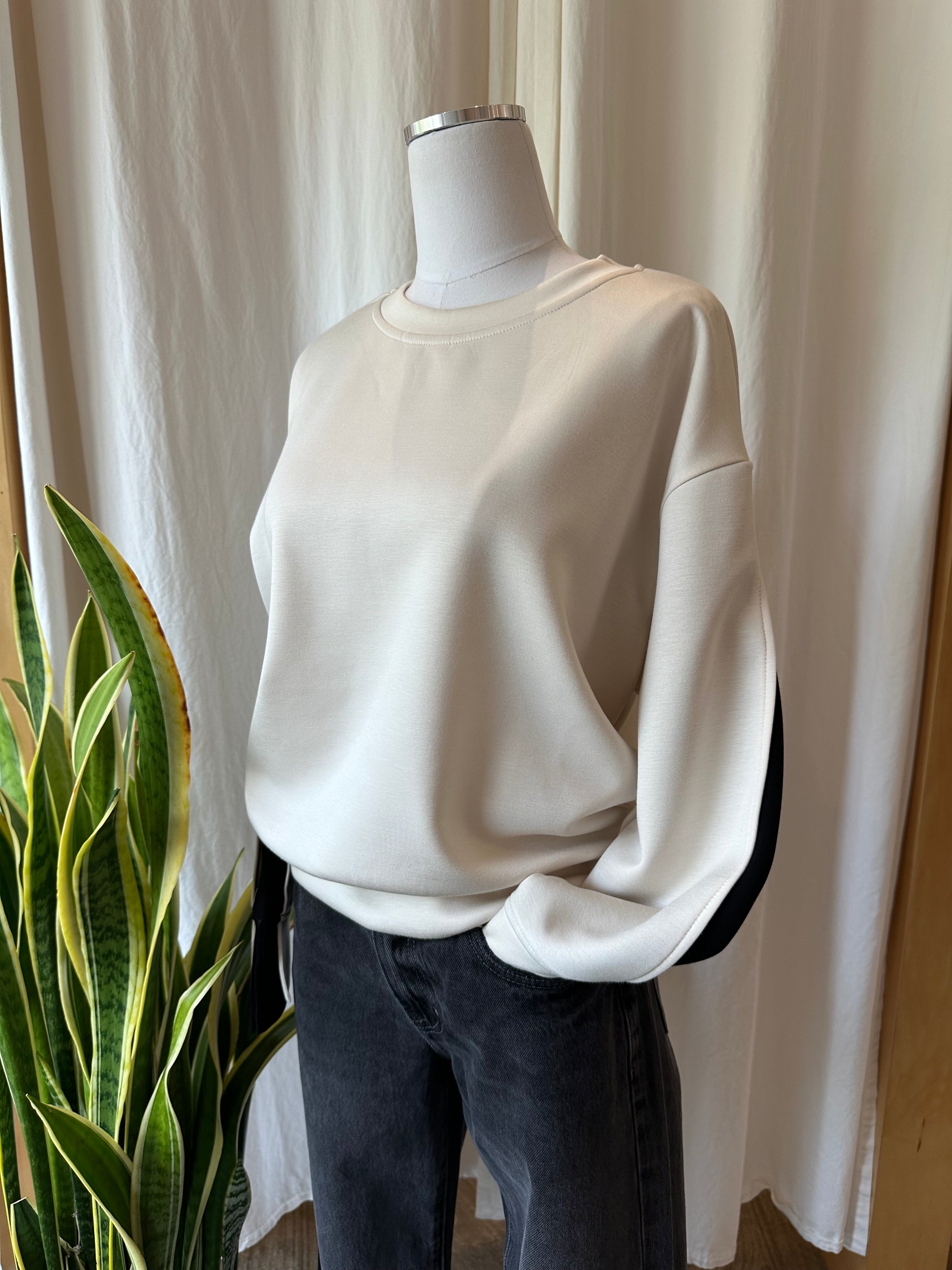 Wrap yourself in cozy charm with the Juno Top—a buttery soft modal fabric in a dreamy eggshell shade. Its layered long sleeves and round neck add playful dimension, making it perfect for laid-back days or casual outings. Effortless comfort meets subtle style in this easy-to-wear essential.