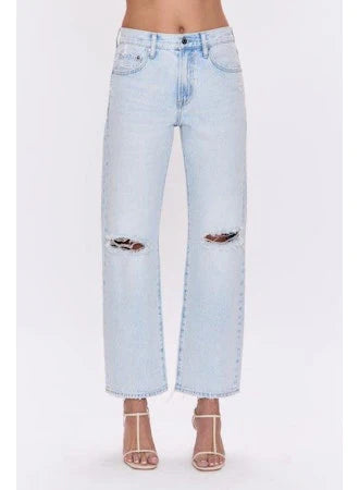 Lexi Mid Rise Bowed Straight - Solstice Distresse