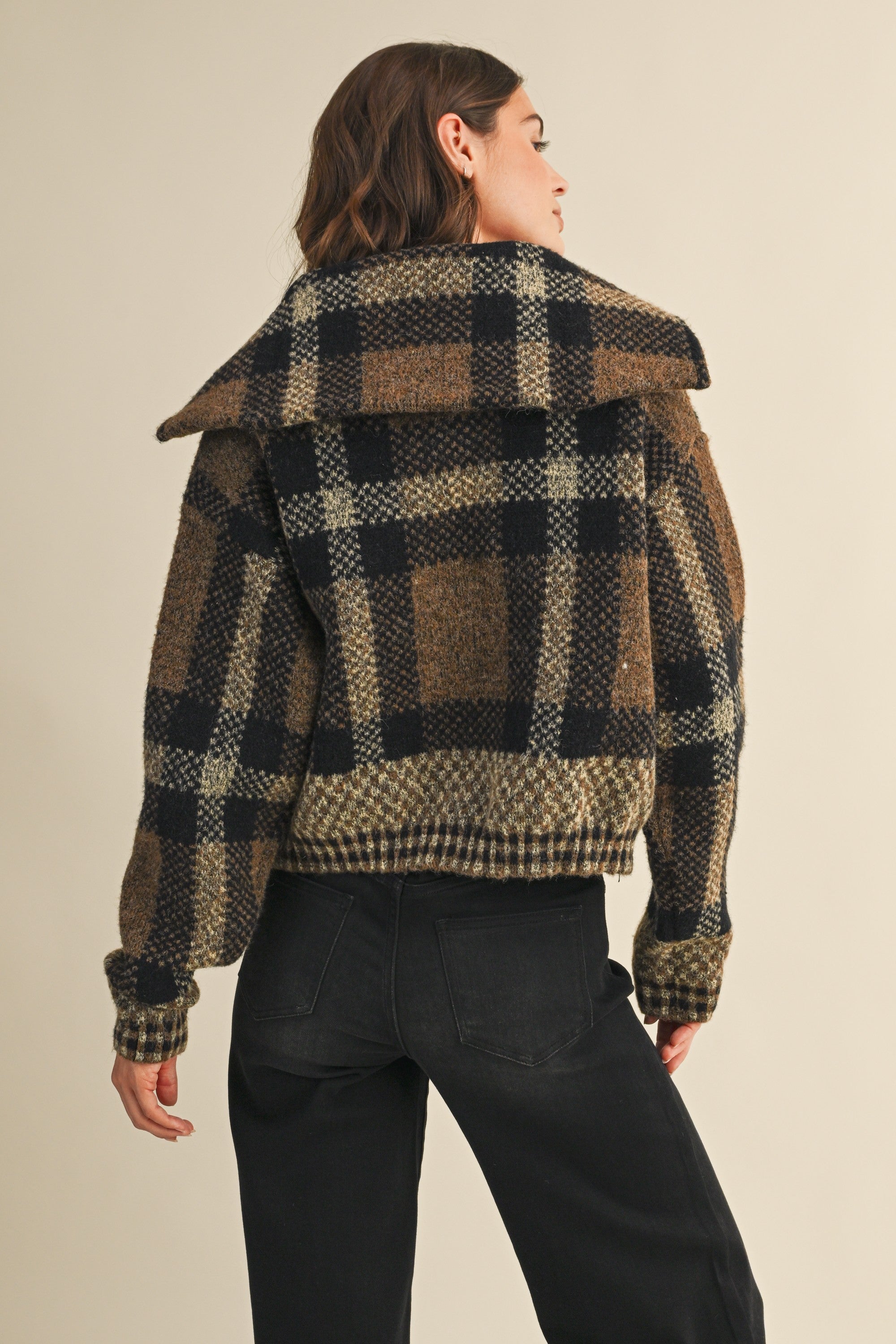 Wrap yourself in cozy vibes with the Matthau Jacket—a checkered fuzzy sweater that's equal parts comfort and cool. Featuring an oversized neck collar, two-way zipper, and a roomy kangaroo pocket, this cropped layer keeps things relaxed and effortless. Perfect for throwing on when you want that snug, huggable feel without sacrificing style. The relaxed fit makes it your new go-to for casual days and chilly nights.