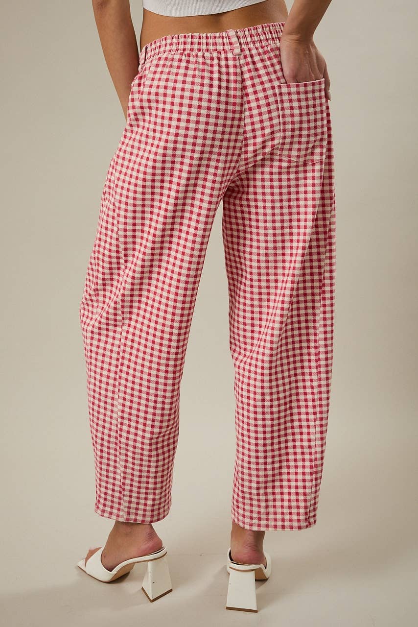 Step into comfort with our Anne Pants—a playful take on classic style. Featuring a cheerful gingham print and relaxed barrel silhouette, these twill pants offer an effortless vibe perfect for casual days. The elastic waistband ensures all-day comfort without sacrificing that put-together look. Mix and match with your favorite tops for endless outfit possibilities.