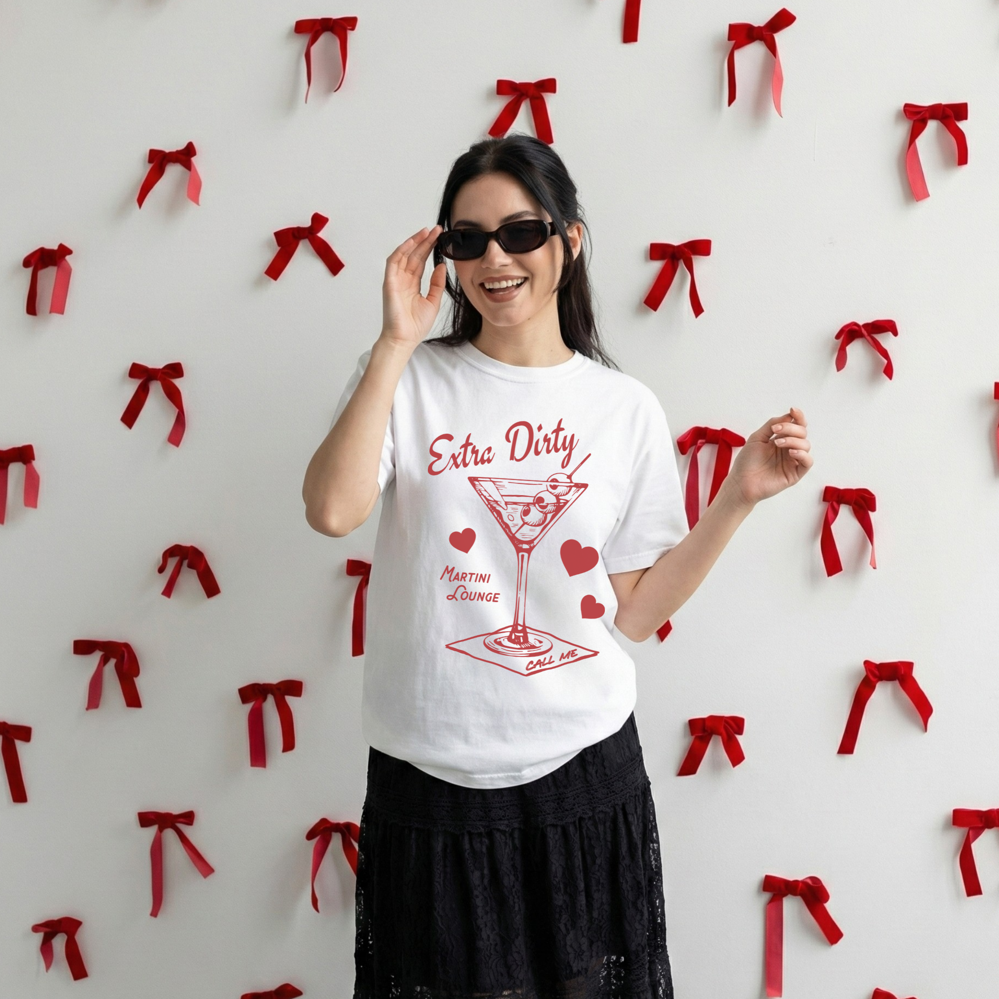 A little cheeky, a little classic — the Extra Dirty Martini Lounge Tee is the perfect blend of flirty and fun. This retro cocktail illustration gives major vintage bar vibes, making it the ideal tee for Valentine’s, girls’ night, date night, or anyone who loves their martinis extra dirty. Printed on the premium Comfort Colors 1717, it has that soft-washed, lived-in feel everyone loves with a relaxed, oversized fit that styles effortlessly with denim, skirts, or cozy cardigans. Whether you're dressing it up or keeping it casual, this one always makes a statement.